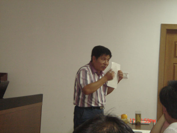 闸北中学校长刘京海教授从多元目标与多元学习方式、如何完善多种学习方式、用中国元素重新结构等四个方面,作了题为《用中国元素重新结构课堂》的精彩报告;上海社会科学院的杨雄教授针对社会管理、“80后”、集体记忆、“图像”一代、“橡皮现象”等时代热点问题,作了题为《社会建设与青年发展》的精彩报告;上海市跨学科课程研究所的刘定义教授从研究者的内涵、教师如何成为研究者、教师专业发展的主要途径等方面,作了题为《教师成为研究者》的精彩报告;浦东教育发展院的陈家昌教授,从教师形象的现实意义和理想价值、当前教师形象的社会透视、班主任人际沟通的类型与方式、教师形象的建设性思考和当前教师的努力方向五个方面,作了《班主任形象与人际沟通》的精彩报告;上海市教育科学院吴增强教授从理解学生内心的疼痛、情感困惑辅导、厌学心理辅导、青春期异性交往辅导等四个方面,作了《学生心智成长与心理辅导》的精彩报告。华师大郭景扬教授曾在我校讲学,此次又作了《教师专业化发展与课堂教学研究》的精彩报告,我校及博山六中、八中的教师利用休息时间,将郭教授围得水泄不通,纷纷请教、探讨其理论在高中的可行性并积极订购其正在出版的专著,学习的氛围可称此次培训的高潮。