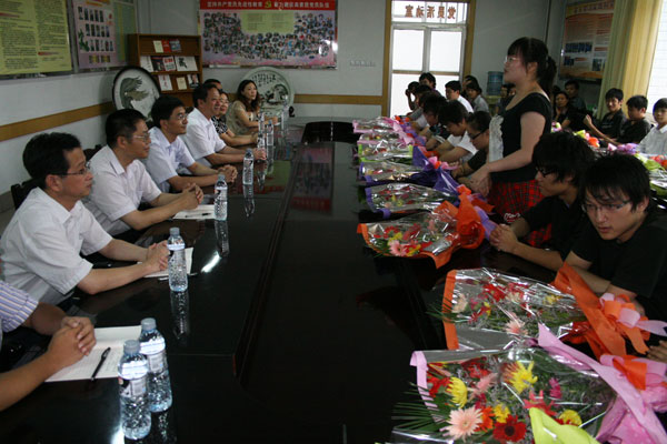 陈校长对即将远行的学子表示了热烈的祝贺。他希望学生们要时刻把祖国放在心中,不管走到哪里都做个堂堂正正的中国人。市招生办王主任对我校的出国留学工作做了充分的肯定,赞扬了我校在过去几年所作出的成绩,同时也对今后的出国留学工作提出了更加具体细致的要求。