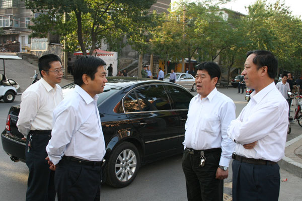 9月22日,区委书记、区人大常委会主任王树槐,区委常委周庆德一行,来校走访慰问。在考察了校园及周边环境整治和听取了校庆筹备情况后,王书记指出, 85周年校庆,不仅仅是淄博一中的盛事,也是全区的大事,一定要搞好外部环境治理,为来自全国各地的宾朋好友展示博山良好的形象、展示一中亮丽的风采。学校陈贞凯校长代表全校师生,感谢博山区委、区政府多年来对学校的关心支持,表示一定要通过校庆华诞庆典,提高学校办学水平,提高教育教学质量,为造福博山人民多做贡献。