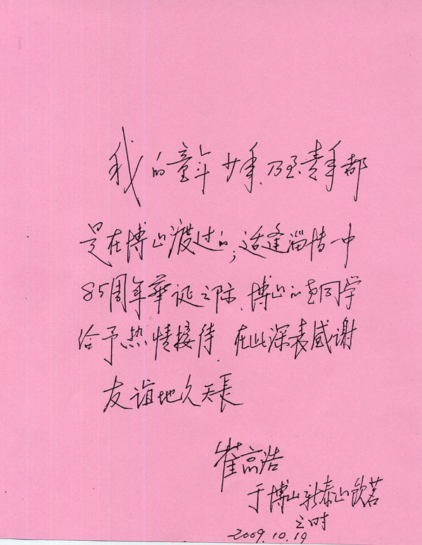 心语:部分老校友恭贺母校85华诞