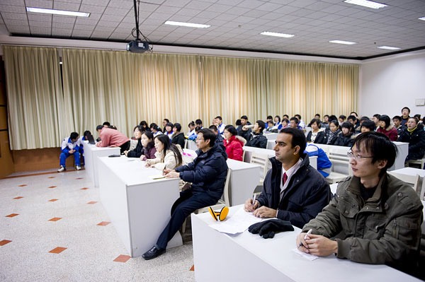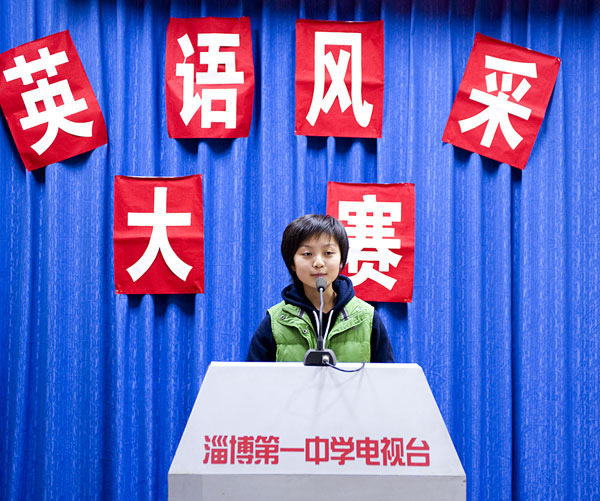 在学校第二十一届艺术节来临之际,为激发学生的英语学习兴趣,展示学生的英语口语水平,学校决定由英语教研室承办“英语风采大赛”活动,高2008级英语教研组策划组织了一场突出展示学生演讲口才的比赛, 比赛分为预赛和决赛两个环节。以“畅想明天,拥抱新年”为主题的决赛于12月23日下午在学校科技报告厅举行。