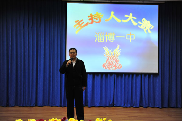噢,别误会,这是淄博一中主持人大赛中的精彩镜头。