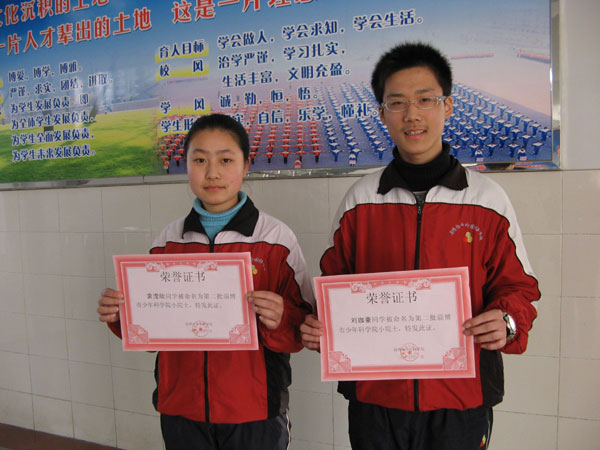 袁滢欣、刘珈豪被命名为市少年科学院小院士