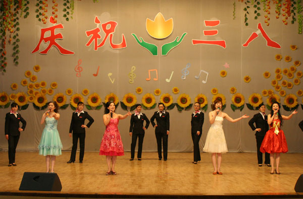 为庆祝第100个“三•八”国际劳动妇女节,3月7日,市直教育系统庆“三八”卡拉OK及服饰礼仪展示”比赛活动在淄博四中举行。我校由25位女教师组成的参赛队伍获得了一等奖的好成绩。