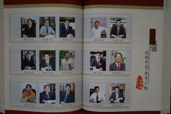 山东省跻身《感动中国教育人物——中国名校校长风采录》的其他14位校长分别来自:青岛二中、山师附中、省实验中学、莱州一中、莱芜一中、枣庄八中、肥城一中、章丘四中、威海一中、日照一中、济南育英中学、淄博师专附小、菏泽牡丹区二小和莱芜钢城区黄庄镇丈八丘联小。