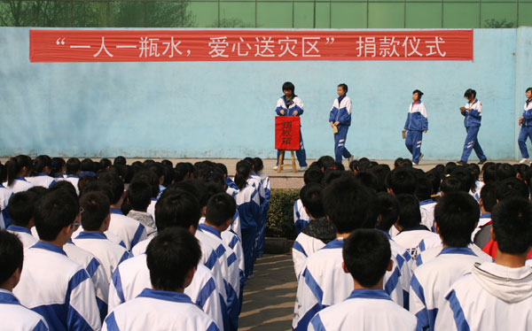 我校团员青年开展“一人一瓶水,爱心送灾区”活动