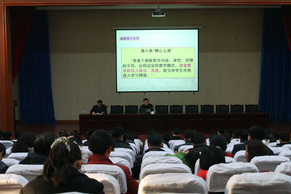3月30日下午,同佑大讲堂里座无虚席,现场气氛热烈。孙兆刚老师代表语文教研室举办了一场题为《转轴拨弦三两声,未成曲调先有情》的教研报告会。这是我校启动“名师培养工程”以来的首场科研报告,标志着我校名师教育论坛活动正式拉开了序幕。