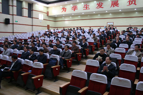 4月9日上午,全市2010年高三教学工作阶段性诊断分析会在我校召开。市教育局副局长、调研员张景春出席会议并讲话,市教育局党委委员、市教研室主任苏明光主持会议,各区县教育(教体)局分管局长、教研室主任,各普通高中学校校长、分管校长,市、区(县)高中教研员200余人参加会议。