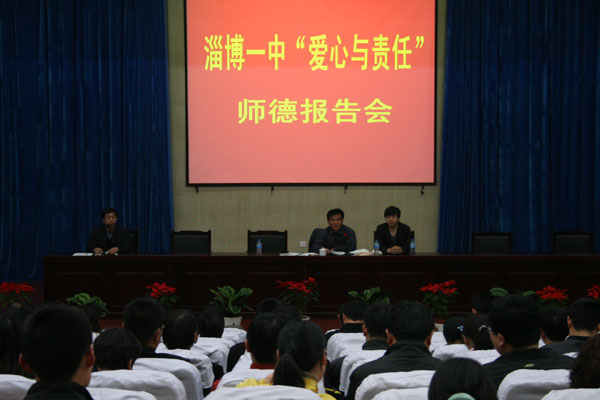 2010年4月20日,我校邀请中华家庭教育研究会会员、山东理工大学特聘教授刘树国先生为全校教职工做了题为“爱心与责任”的师德报告,在会上刘树国教授用渊博的知识、风趣幽默的语言、生动鲜活的例子,深入浅出地给老师们讲授了“究竟什么是教师的爱心?如何展现爱心?对谁展现爱心?怎样激发教师的爱心?怎样管教学生、与学生沟通?什么是责任?如何展现责任?”等等问题。大家深受启发,受益匪浅。老师们纷纷表示:要以这次报告会为契机,更新认识,转变观念,在工作中尊敬领导、团结同事,用自己的爱心教育好每一个学生,也必将在今后的工作中,从一点一滴做起,把对事业、对学生的爱心与责任落实到每一句话、每一件事、每一个行动上,让广大学生健康快乐成长。