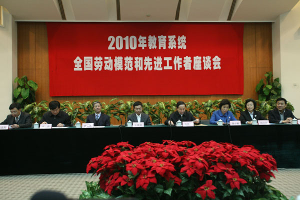 到京出席2010年全国劳动模范和先进工作者表彰大会的教育系统全体代表参加了座谈会。据了解,今年教育系统全国劳动模范和先进工作者共206人,占劳模总数的近7%。