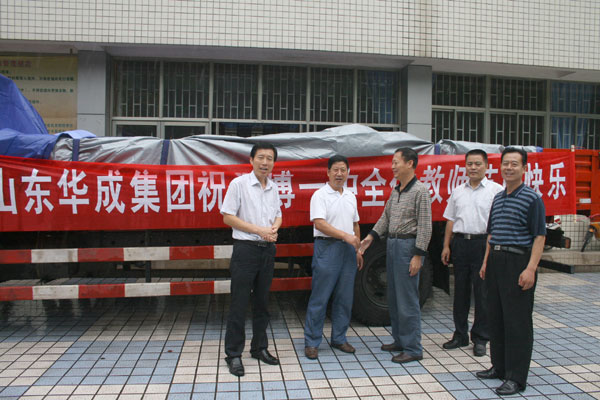 友好单位前来贺节慰问 日期:2010-09-09 来源:本站 X 在教师节来临之际,社会各界友好单位纷纷前来,向我校教职工祝贺节日。东佳集团、华成集团、淄博市第一医院等单位先后送来厚重的礼品,向奋战在教育教学一线的老师们致以亲切的慰问。