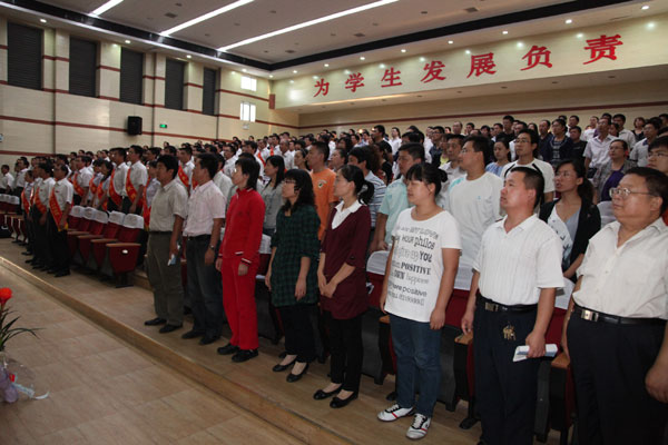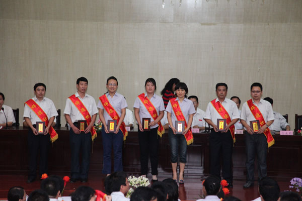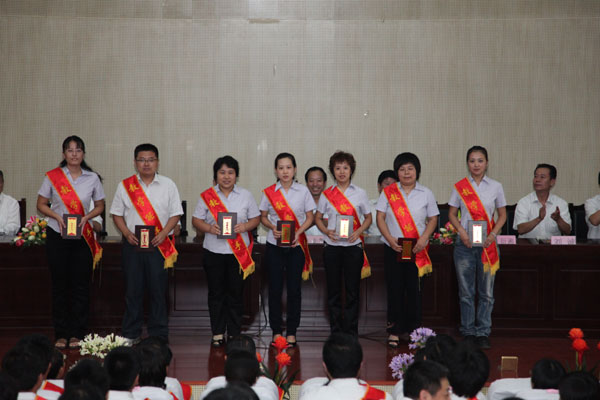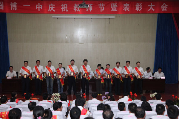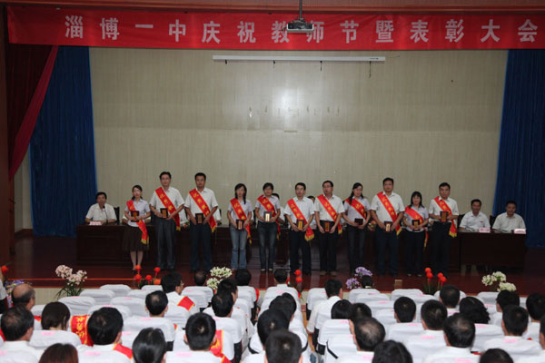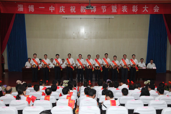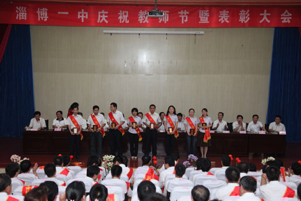9月10日下午,我校庆祝第26个教师节暨表彰大会在同佑大讲堂举行。会议隆重表彰了山东省特级教师、山东省2010年度教育创新人物提名奖、淄博市师德标兵、2010年度淄博市教育创新人物和学校第七届优秀教师、优秀教育工作者,第八届师德标兵,第五届教学能手,第二届模范班主任等79名同志。