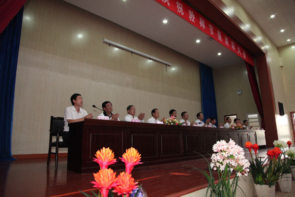 司志宏书记发表了热情洋溢的讲话。司书记首先向在场的老师们表达了教师节的诚挚问候,并向获得荣誉的各位老师表示祝贺。在简要总结了上学年所取得的主要成绩之后,他指出,中国的未来发展,中华民族的伟大复兴,归根结底靠人才,人才培养的基础在教育。建设一支师德高尚、业务精湛的教师队伍,是加快教育事业发展的根本大计。现在,淄博一中在诸多方面均取得了显著成绩,这些成绩来源于各位教职工的辛勤付出和自我牺牲,司书记对大家在各自岗位上做出的积极贡献表示衷心感谢。他希望大家在荣誉面前要保持清醒的头脑,切实维护好在全市的“一字号”品牌,团结协作,开拓进取,扎实工作,为我校跻身全省、全国优质品牌学校之列、为全市教育的飞跃发展做出新的更大的贡献。