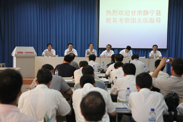9月16日,甘肃省静宁县高中新课改教育考察团一行28人在教育局李永成局长的率领下,来我校参观访问。校长陈贞凯、党委书记司志宏、副校长徐继华、校长助理李诚及有关教育教学负责人热情接待了客人。考察团一行在参观校园、校园馆后,对我校悠久的办学历史和丰厚的文化底蕴给予高度评价。随后,考察团在学术报告厅与我校教师进行了座谈。双方在办学理念、教学管理、学科教学等方面进行了交流探讨,考察团还深入教研组进行了听课、议课。通过交流,双方互通了有无,增进了友谊,为今后进一步开展跨省际交流与合作打下了基础。