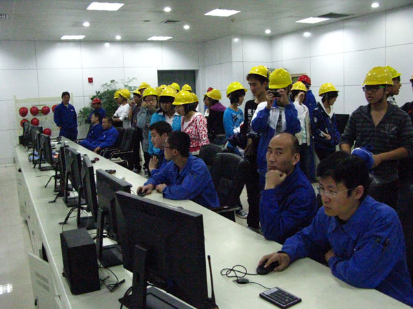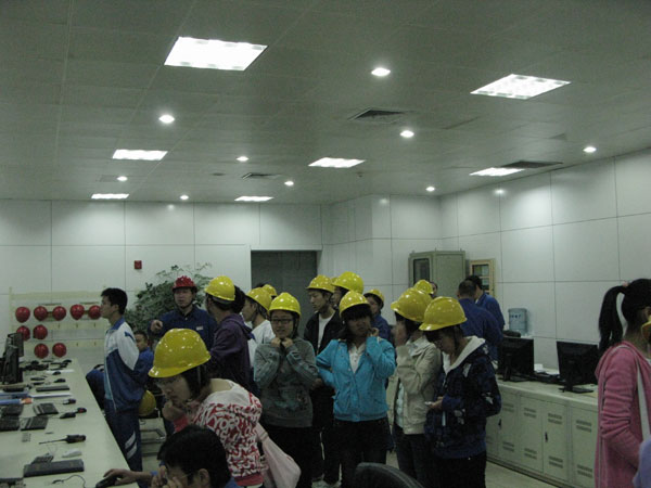一向以安全为基本要求的电厂工人师傅们给我们都配备了安全帽。 戴着安全帽,在工人师傅的引领下,我们参观了汽轮机,发电机,蒸汽机等一系列发电器材,不禁感叹于现代科技如此发达。当参观到电厂的核心——主控室的时候。一排排电脑设备,密密麻麻的数据显示,让我们惊叹于现代科技给人们的生活所带来的巨大威力,并深刻认识到了掌握科学文化知识的重要性。