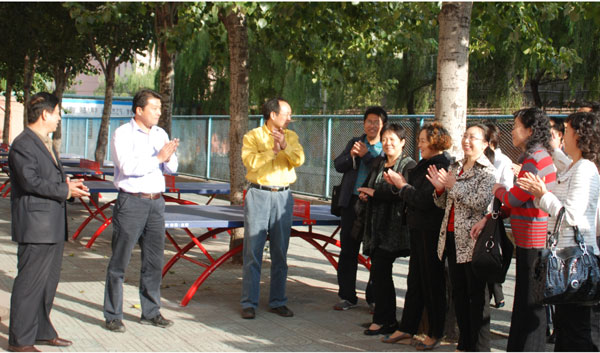 10月3日,在国庆节的喜庆气氛里,在毕业30年之际,我校高78级1班校友带着对母校、对老师的深切感念和同学间的真挚友情,喜聚母校。校友们参观校史馆、同佑大讲堂,徜徉在校园,幸福的回忆着曾经校园生活的快乐与收获,自豪于母校的巨大变化,抒发着作为一中校友为母校争光的情怀。校友们向母校赠送由8个乒乓球台组成的“怡康园”,表达对母校的深情祝福。副校长张业玉老师代表学校热情接待了校友,并为“怡康园”揭牌。