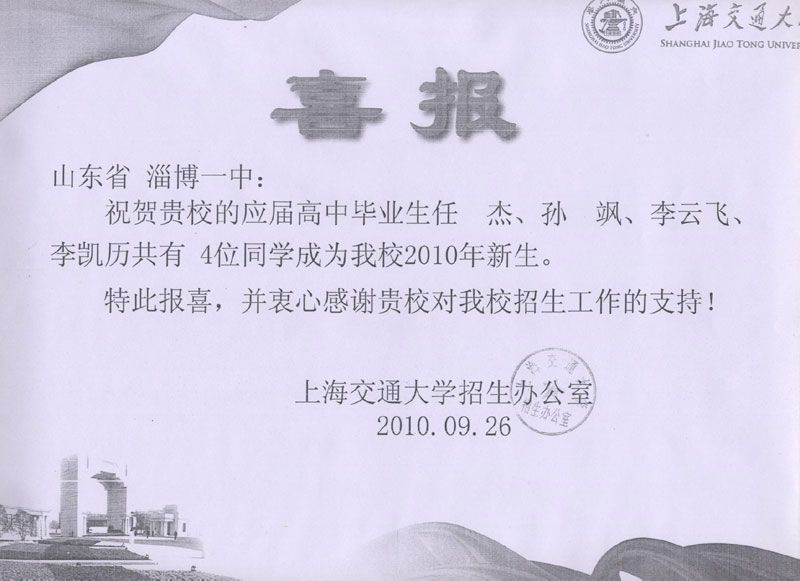 上海交通大学喜报