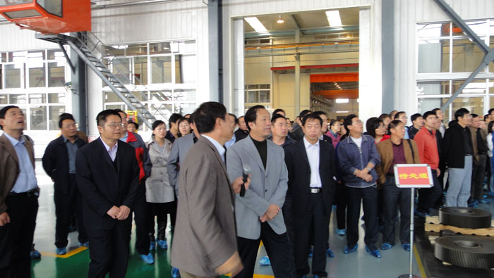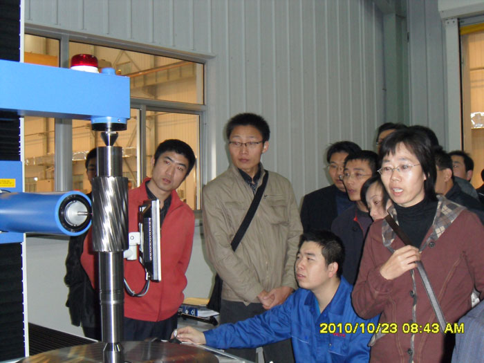 八点整,全体党员在博爱广场集合出发。半小时后,到达华成集团第三分厂。第三分厂主要制造精密减速机及风力发电增速齿轮箱,主导产品达到世界一流设备的水平,代表国内同行业的最先进水平。进入车间前,管理人员提示老师们穿上鞋套,因为这是无尘车间。