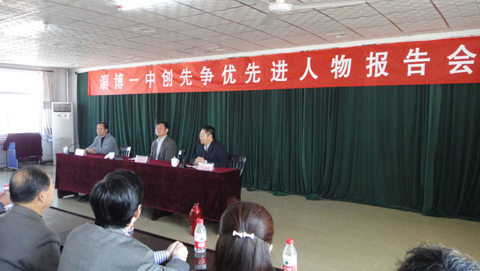参观结束后,全体党员到二分厂的会议室聆听“淄博一中创先争优先进人物报告会”,集团董事长、党委书记陈维茂结合自己的奋斗经历给大家上了一堂精彩的党课。