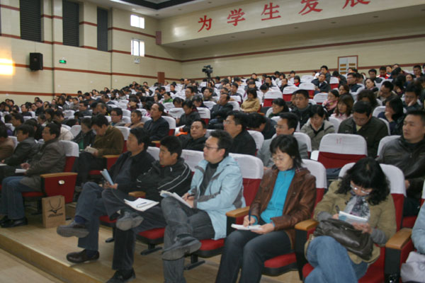 下午第二节课,上海优秀班主任,知名班级管理专家倪怀玉老师为我校及博山区属中学400余名教师作了题为《孩子们是一本耐读的好书》的专题报告。报告以老师应具有的五心(爱心、细心、耐心、恒心、平常心)为主线,从 “多一点赞美之情”、“言传身教不能少”、“牵牢家长的手”、“和孩子们一起成长”、“班主任工作中的几个不等式”五个方面阐述了班主任工作的技巧和方法。科学严谨的理论,生动鲜活的案例,精辟智慧的语言,赢得在场听众的阵阵掌声。