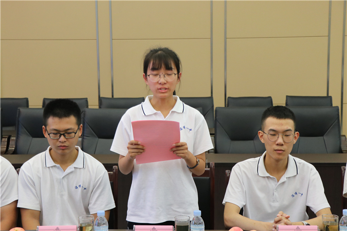 张玉莹代表获奖学生发言,表达了对母校三年悉心培养的感恩和对金晶集团的感谢之情,表示在接下来的学习生涯中,用朝气和梦想担当时代使命,不懈奋斗、追梦前行,在上下求索的过程中实现自己的人生价值。