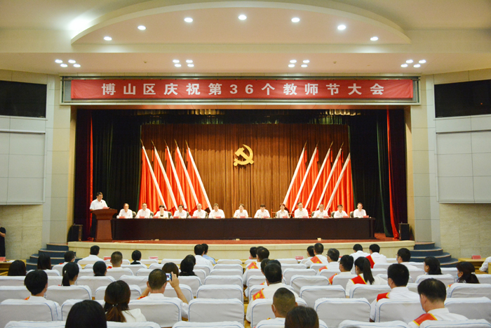 9月6日上午,博山区庆祝第36个教师节大会在区机关礼堂隆重召开。区委书记刘忠远出席会议并讲话,区委副书记、区长路德芝主持会议。区有关领导及相关单位负责人、教师代表、企业代表和家长代表参加会议。