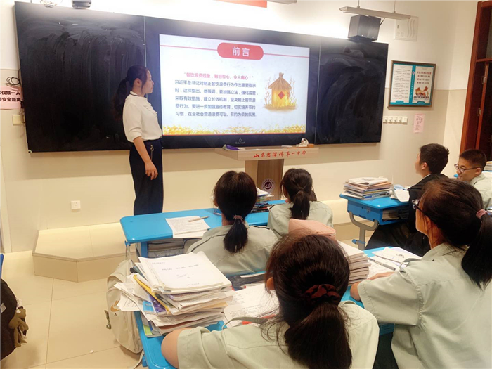 班会时间,各班召开“节约粮食,从我做起”主题班会,各班主任向同学们分析了节约粮食的必要性、重要性,并呼吁同学们坚决制止餐饮浪费行为,在社会、家庭、学校中切实培养节约习惯。