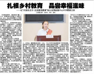 扎根乡村教育 品尝幸福滋味——记“闪亮的名字·全国最美教师”桓台县荆家镇中心中学教师王菲
