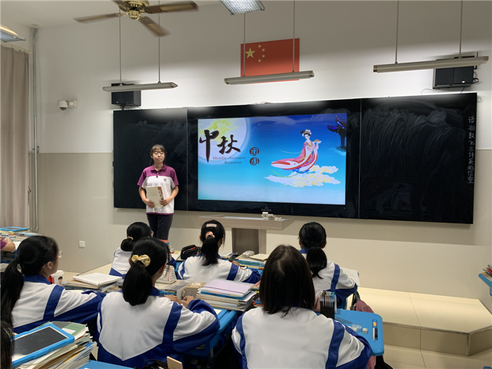 一是开展中秋节经典诵读活动。学校2019级语文组通过讲民俗故事、经典诵读等形式组织开展中秋节经典诵读活动,释解传统节日的内涵,让同学们感受传统节日的魅力,大大激发了对中秋节浓厚的兴趣。