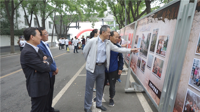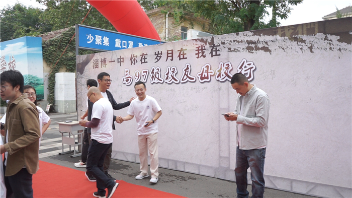 在一面偌大的签名墙上,校友们庄重的亲笔签下自己的名字。按照疫情常态化防控要求,经测温、出示健康码后,校友们步入校园。站在老照片展板前,校长年轻时、旧貌新颜、难忘中高考、记忆中的迷彩、元旦快乐、毕业留言册等12个板块仿佛将校友们又带回到了20前。