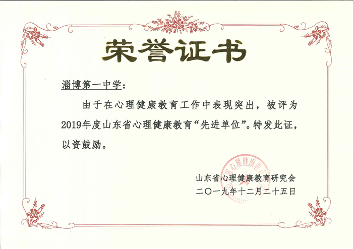 我校被表彰为2019年度山东省心理健康教育先进单位