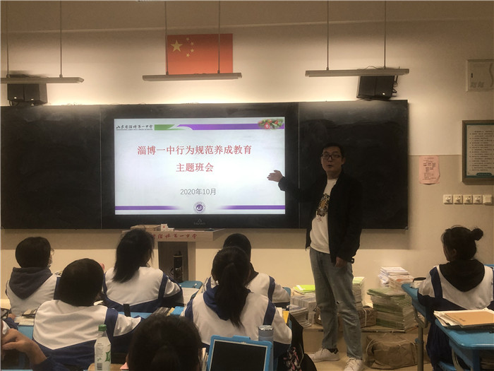 10月19日上午,2020级师生在校本部篮球场举行了“行为规范养成”主题升旗仪式。教务处副主任肖萍作动员讲话,要求所有同学要规范个人日常言行举止,具体到规范每一堂课、每一节自习;同时提醒同学们规范使用电子书包,提高学习的效率和质量。下午,各班召开主题班会,各班主任详细讲解了学校提出的八项学生行为规范,并进一步强调规范行为习惯的重要性。