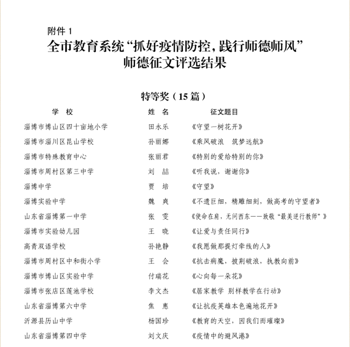 近日,全市教育系统“抓好疫情防控、践行师德师风”师德征文和短视频比赛评选结果公布,我校4名教师取得优异成绩。