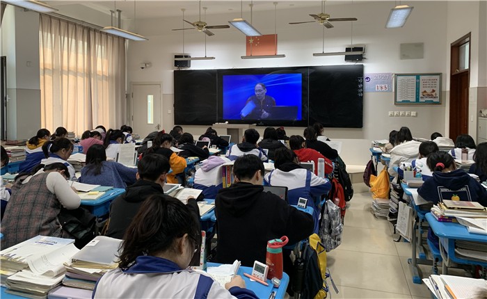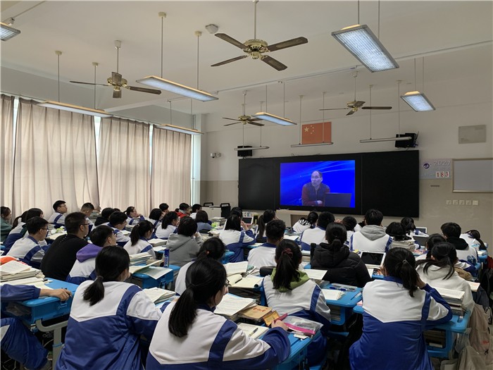 12月6日,为进一步提高高考作文备考效率和质量,我校特邀淄博市教学研究室语文教研员、省特级教师王玉强为2018级全体学生作高考作文专题报告,各班通过校园电视台观看直播。