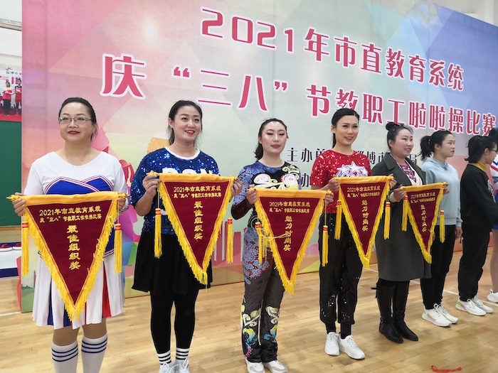 3月19日,由周海霞老师指导,张志程、李文哲等10名教师组成的学校啦啦操队在市直教育系统庆“三八”教职工啦啦操比赛中,获得“魅力时尚奖”。