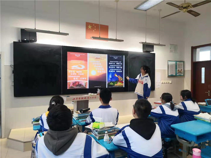 聆听人民日报新媒体推出的建党百年主题MV《少年》。同学们跟随音乐回顾中国共产党从成立到抗战、新中国成立、改革开放、香港回归等重大历史事件,无数张奋斗的面孔一一闪过,党的百年进程在昂扬激情的旋律中铺展开来,同学们听后感到热血澎湃、振奋人心。