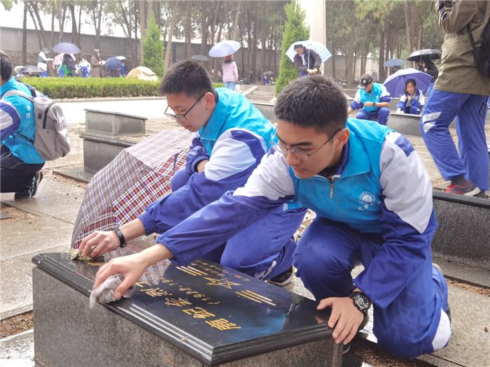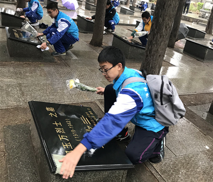组织开展志愿服务活动。烈士纪念馆前,我校学生担任引导员,组织学生有序进入纪念馆。在红色记忆馆,我校学生担任讲解员,详细讲解了中共一大——十九大的发展历程,着重强调了习近平总书记崇尚英雄、缅怀先烈的讲话精神。在烈士墓前,同学们冒雨瞻仰烈士墓,擦拭烈士墓碑,缅怀先烈,表达哀思和敬仰之情。