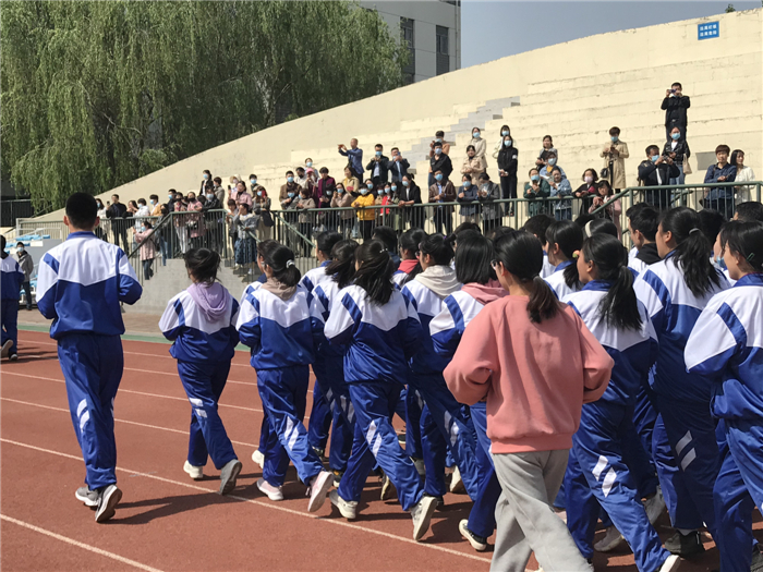在操场上,课间操时间,学生们集合迅速、步伐整齐、口号响亮,充分展示了良好的精神风貌。家长们纷纷拿出手机或拍照或录制视频记录下这些壮观的场面。