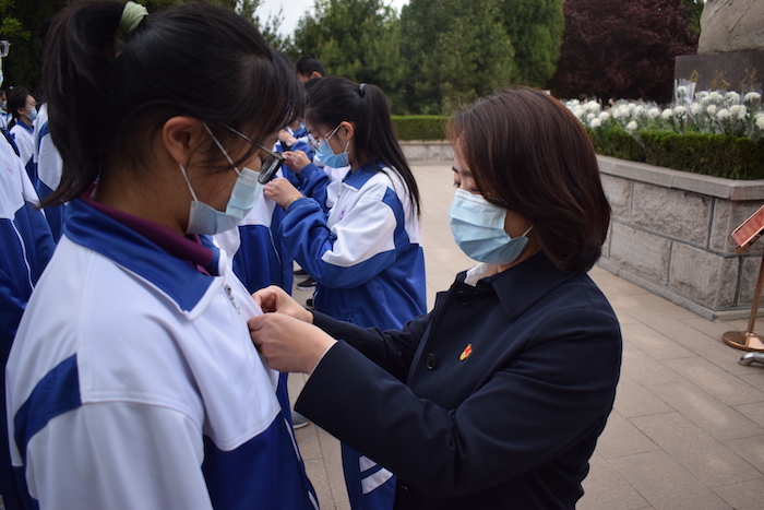 在激昂的国歌声中,入团仪式拉开序幕。学校团委书记张建武宣布新团员名单,向新团员们表示热烈的祝贺,学校领导、老团员代表为新团员颁发并佩带团徽。全体新老团员庄严宣誓,用誓词表达了对共青团组织的无限向往和为团组织增光添彩的豪迈激情。