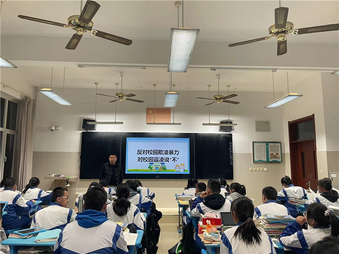 为加强校园安全环境建设,有效预防校园欺凌事件,增强学生的自我保护意识,促进学生身心健康发展,近日,淄博一中开展了主题为“对校园霸凌说不”的防欺凌安全教育主题班会。