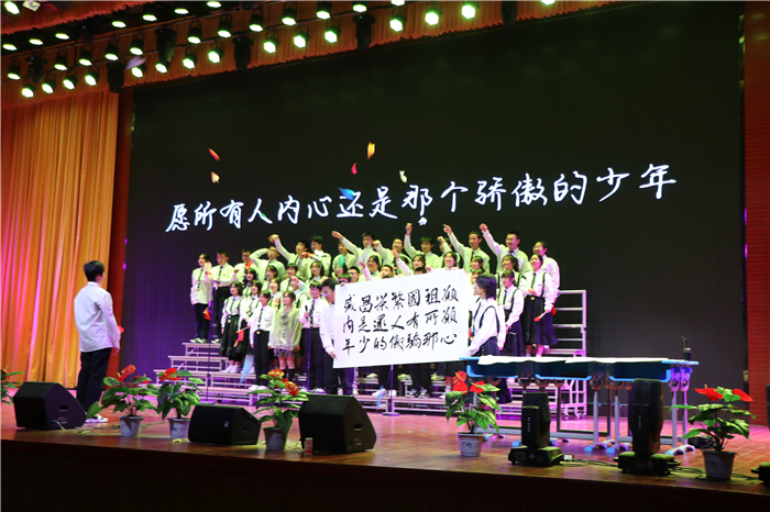 大赛开始,一首《国家》将现场气氛迅速点燃。随后各班级的演出更是精彩纷呈,高亢嘹亮的歌声,整齐一致的服装,独具匠心的编排,为观众们展示了一场精彩的视听盛宴。《在太行山上》、《国际歌》、《少年中国说》一首首激情澎拜的歌曲将比赛推向高潮,展示了广大青年学生朝气蓬勃、奋发进取的精神面貌和与祖国共奋进的时代风采,赢得全场热烈的掌声。
