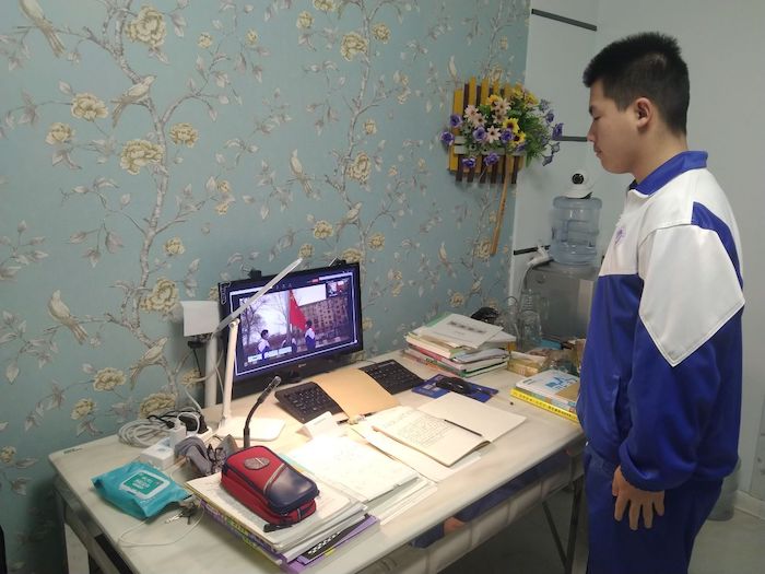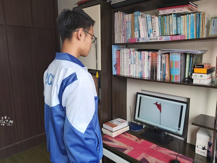 “请全体起立,升国旗,奏唱国歌。”3月21日上午,伴随着激昂的《义勇军进行曲》和缓缓升起的五星红旗,淄博一中学子在家中以视频的方式迎来了一场特殊的“线上升旗仪式”。
