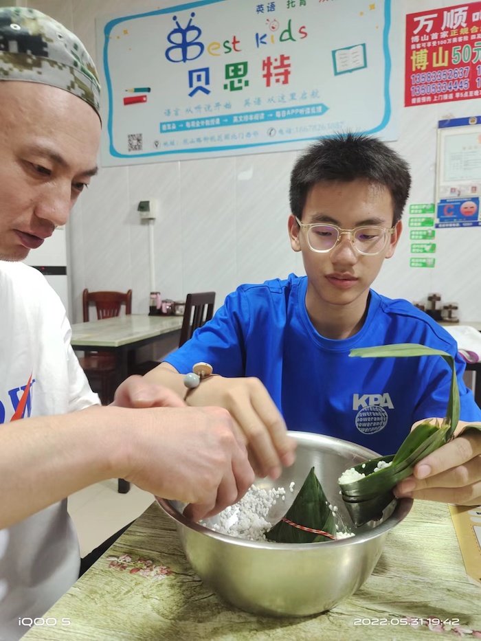 6月3日端午节当日,2021级开展了“‘粽’享欢乐 劳动美”主题教育活动。同学们在家长的指导下,专注于包粽子的每一个步骤——折粽叶、放粽米、加馅料、裹粽叶、扎绳子,在享受家人共聚之乐的同时,也感受到了劳动带来的乐趣。2020级开展了“我们的节日——端午节‘劳动美’”志愿服务活动,同学们走进社区、文化宫,开展志愿清扫服务活动,对卫生死角进行打扫擦拭,维护公共环境卫生,为营造文明和谐、整洁有序的节日氛围做出自己的贡献。
