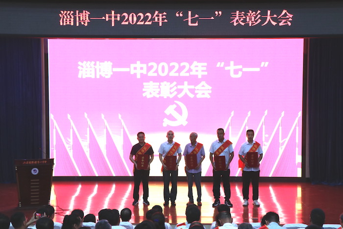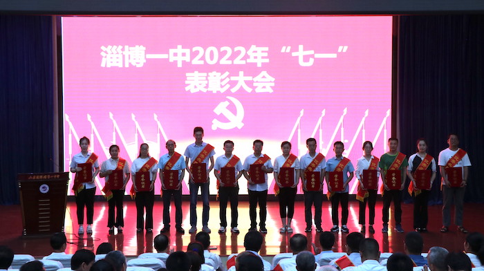 在雄壮的国歌声中,会议拉开帷幕。学校党委书记、校长刘加成带领全体党员重温入党誓词,在铮铮誓言中重温党的初心使命。学校党委委员、副校长李涛宣读《淄博一中关于表彰优秀党员、优秀党务工作者的决定》,马希文等29名同志被表彰为学校优秀党员,冯厚笠等5名同志被表彰为学校优秀党务工作者。学校党委委员分别为获得表彰的同志颁奖。