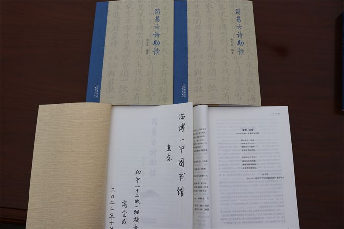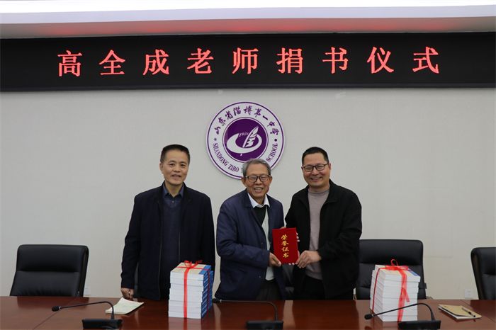 淄博一中百年华诞即将来临之际,2022年10月11日,我校初22级校友、学校退休教师高全成新书《简易古诗助读》捐赠仪式在学校博学楼会议室举行。学校党委书记、校长刘加成,党委副书记吕永军,组织人事处、校庆办公室负责同志和语文教研室教师代表参加捐赠仪式和座谈。
