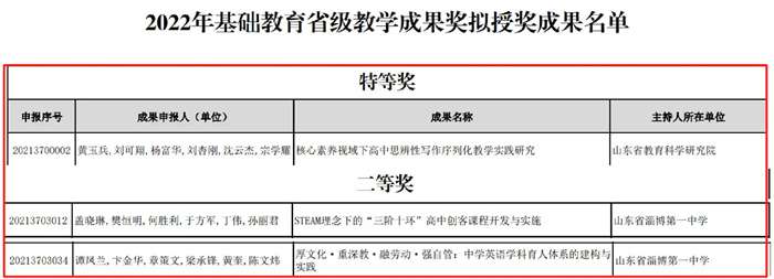 日前,山东省基础教育教学成果奖获奖名单公示,我校有3项成果获奖,为我校近年来所获省级教学成果奖项数之最。