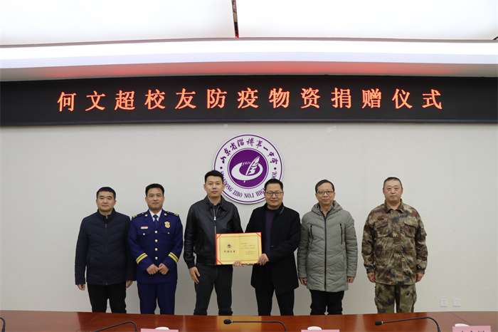 11月22日下午,我校2008级校友何文超向学校捐赠一万只医用外科口罩,助力母校疫情防控工作。学校党委书记、校长刘加成代表学校接受了捐赠。