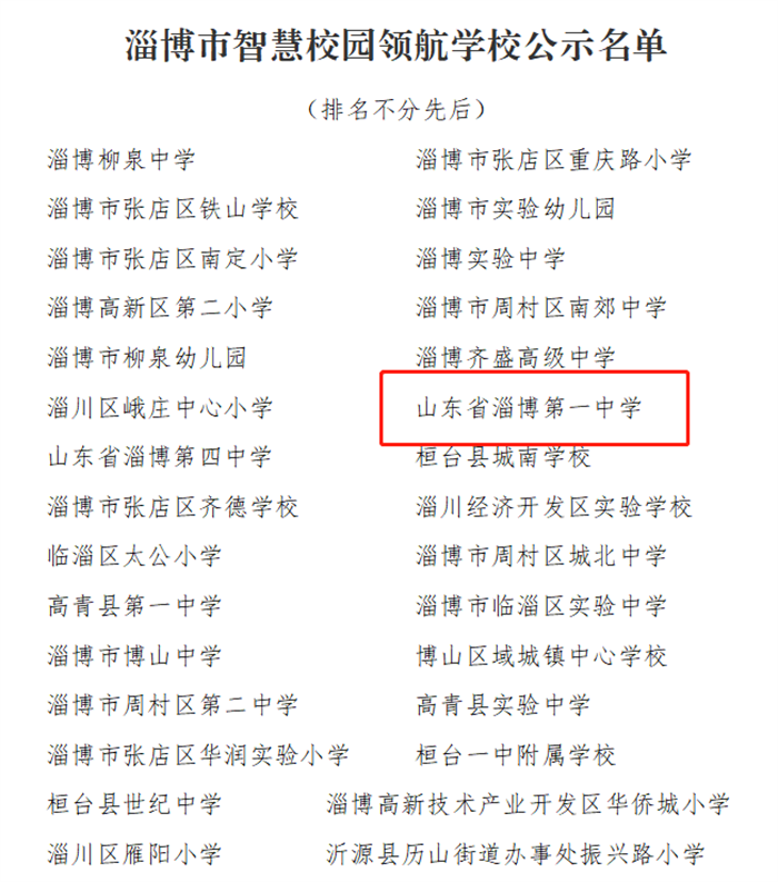 近日,淄博市教育局公布了《关于淄博市智慧校园领航学校和淄博市智慧校园遴选结果的公示》,经学校申报、区县审核和市级展示遴选,我校被评为淄博市“智慧校园领航学校”。