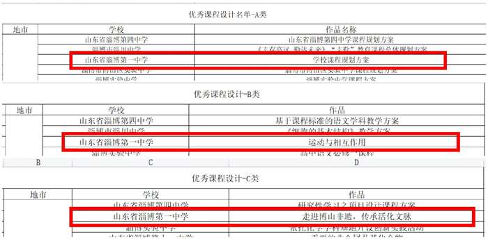 近日,山东省教育科学研究院公示山东省优秀课程设计案例获奖名单。我校推荐的三个课程设计案例均获奖,其中,《学校课程规划方案》荣获山东省优秀学校课程规划方案设计奖(A类),《运动与相互作用》荣获山东省优秀学科教学方案设计奖(B类),《走进博山非遗,传承活化文脉》荣获山东省优秀学科教学方案设计奖(C类)。
