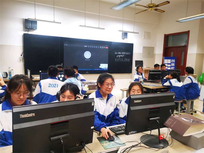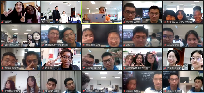 近日,我校高一高二年级的同学们分别与美国全球学习中心孔子课堂(CGS)的同学进行了网络视频交流。学校党委委员、年级主任张奇广,美国孔子课堂教师刘培郡、乐伟英,以及我校部分英语教师参加了交流活动。